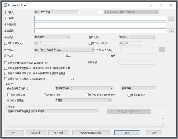 AdvancedRun是一款高级运行管理器,它集成了软件多开、解除时间限制、窗口化运行等一系列功能。AdvancedRun可让您以您选择的不同设置运行程序,包括 – 低优先级或高优先级、启动目录、主窗口状态(最小化/最大化)、以不同用户或权限运行程序、操作系统兼容性设置和环境变量。您还可以将所需的设置保存到配置文件中,然后使用所需的设置从命令行自动运行程序。