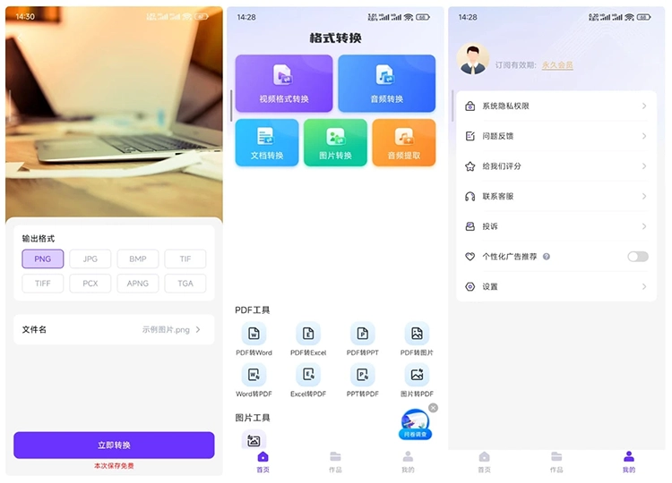 图片格式转换:一键转换图片格式,支持输出格式jpeg、png、webp等。