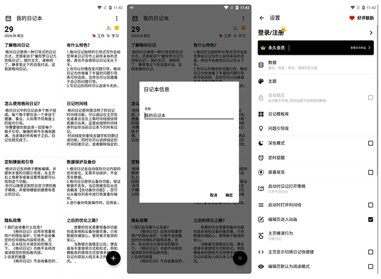 格间日记 是一款引导式写作的日记应用,灵感来自于“曼陀罗日记\九宫格日记”。格间日记化繁为简,简单而不简陋,简约文艺的格子列表,流畅舒适的编辑界面,清晰明了的时间线功能,当你真正在使用到的时候,就会感受到格间日记做到了细致入微。格间日记专注于日记本身的功能,不多但刚好够用,没有任何的杂乱功能会打扰到正在专注写日记的你。