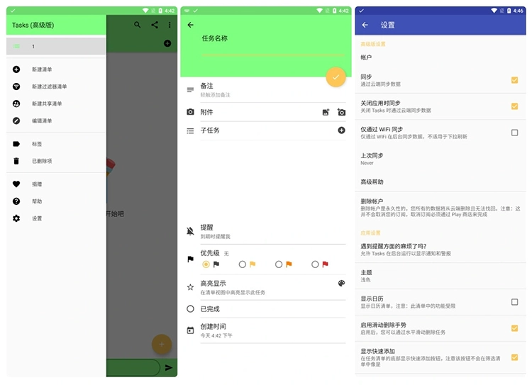 Tasks 是一款精致简约、免费的待办事项清单、新年立志清单、任务清单并带提醒的应用程序,可将您的忙碌生活打理得井井有条。不同职业、不同年龄,Tasks 可为任何用户群提供帮助。无论您是想要一个项目清单、购物清单,抑或是要记住的琐事,Tasks 为您量身打造。借助本应用您可以构建出强大的清单,着色区分,然后通过手势进行管理,例如拖拽改变优先级或滑动删除。