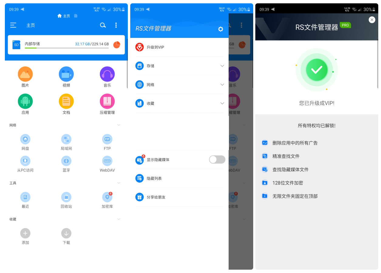RS文件管理器提供各种基本文件操作,包括复制,剪切,删除和重命名文件。还提供文件隐藏,文件书签,文件共享,文件压缩,文件解压缩等。