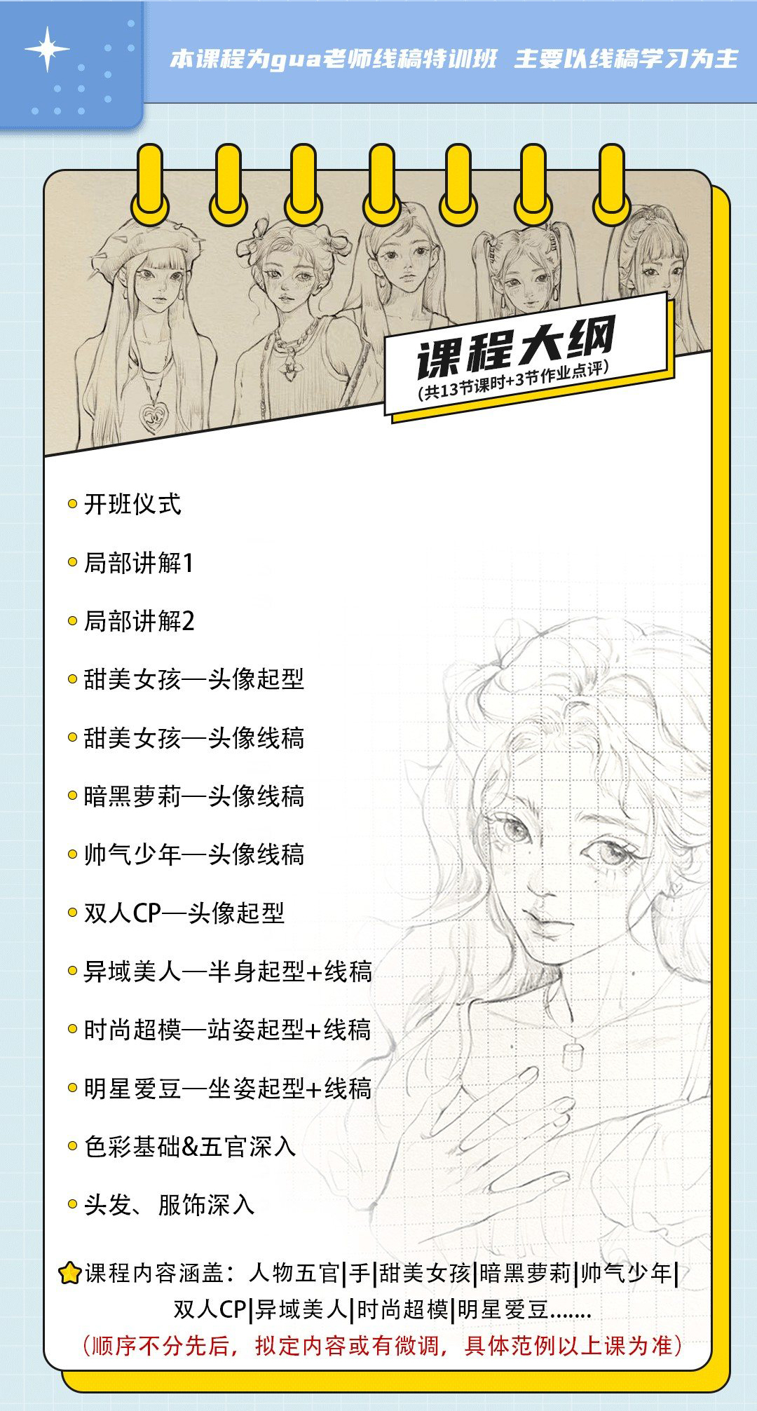 课程来自于 插画喵gua老师线稿特训班第1季2023年1月结课【画质不错有笔刷】