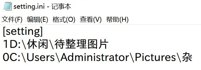 4. 接下来前往案记索图的文件夹,需要配置一下它的设置,打开 setting.ini 这个文件