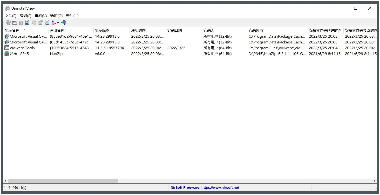 这是一款软件卸载工具UninstallView,32位、64位二合一,可保存设置。UninstallView是一个用于Windows的、小巧的(二合一版只有185KB)卸载工具,它收集系统上安装的所有程序的信息,并显示已安装程序的详细信息。