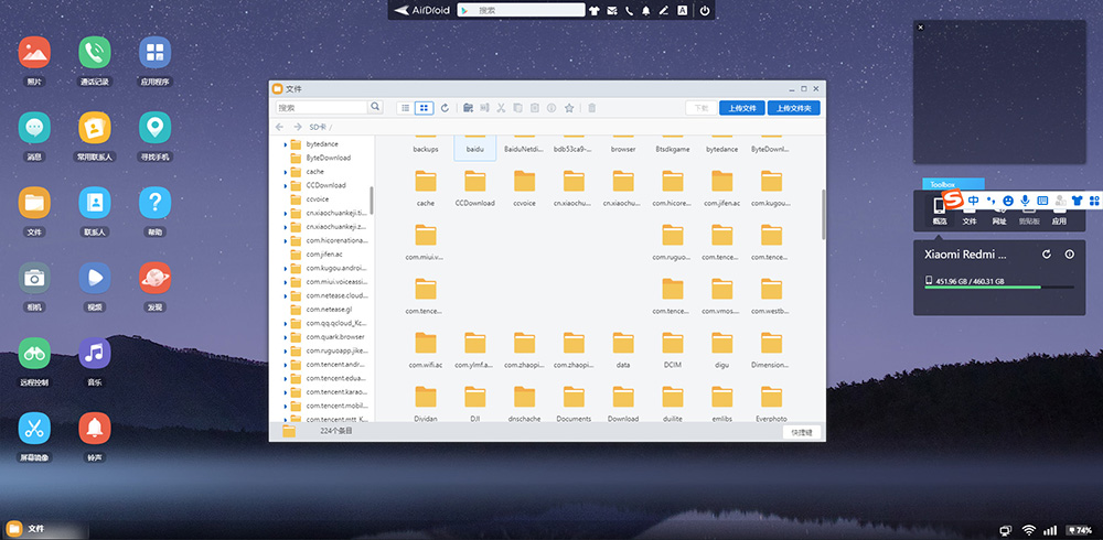 AirDroid 是在全球范围都备受好评的 Android 设备管家,在电脑可以接收设备的通知、回复短信,电脑与设备高效互传文件,远程控制功能更能实现电脑完全控制 Android 设备。