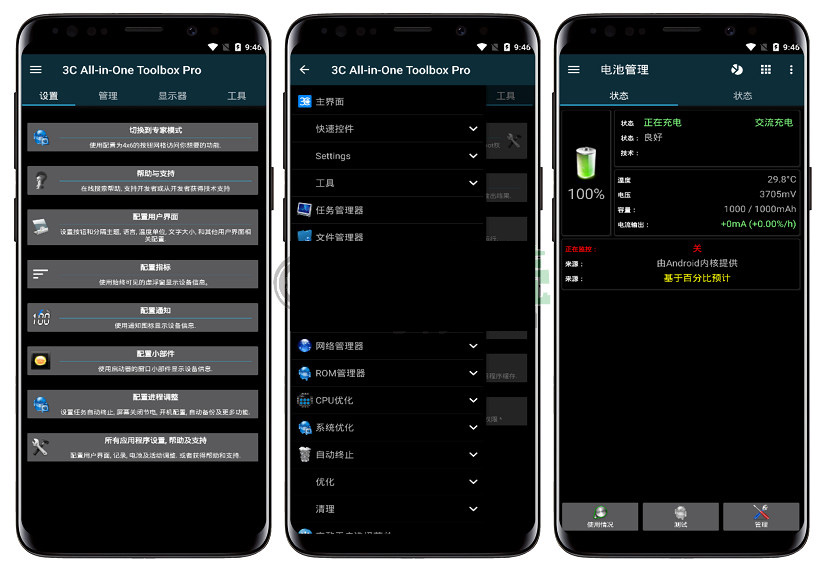 ★工具箱集成可节省电池和性能,配置文件可控制CPU,IO和设备状态,并可从任何地方管理应用程序