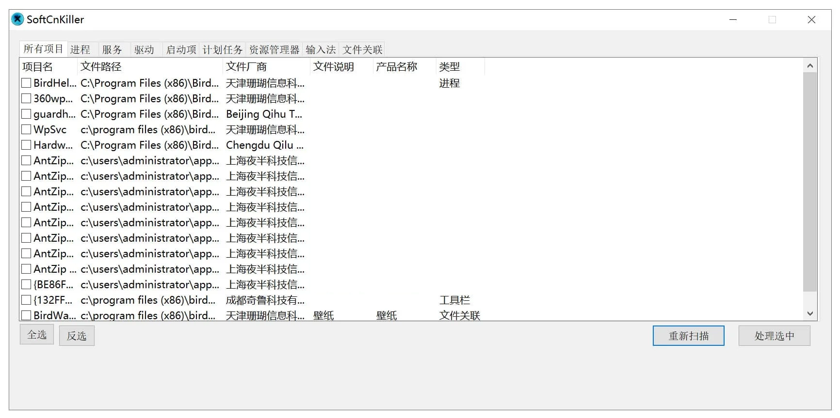 SoftCnKiller可以帮助您分析与查找流氓软件。