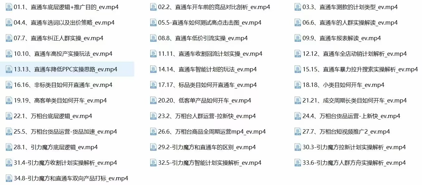 课程来自寒冰的淘系运营VIP体系,手淘搜索底层逻辑训练营。主要内容包括手淘搜索的底层原理,搜索快速入池实操,直通车辅助提升全店动销玩法,全店低价引流,引力魔方体系等。