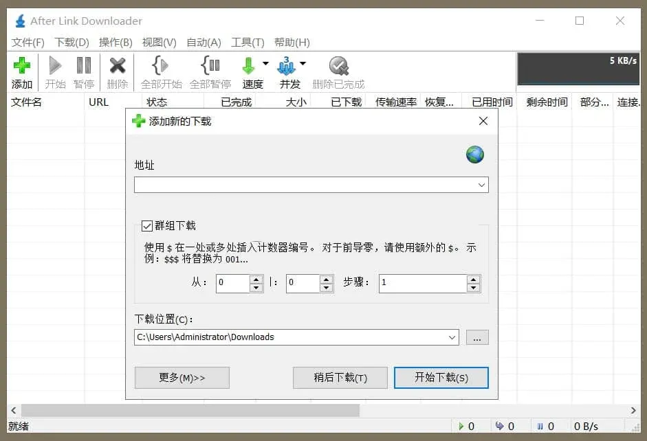 After Link Downloader 是国外程序员 Javad Taheri 使用 Microsoft Visual C++ 开发的一款轻量级的网络下载工具。