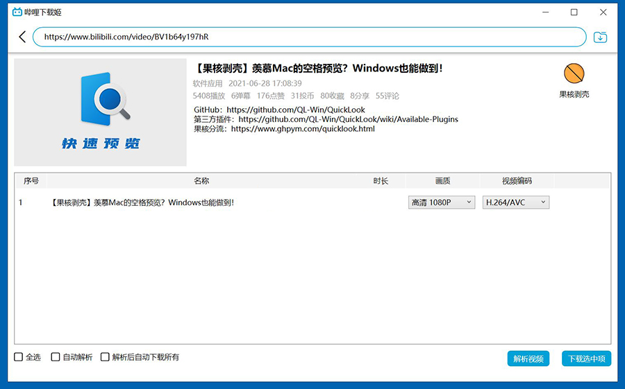 支持视频、番剧、剧集、电影、课程下载